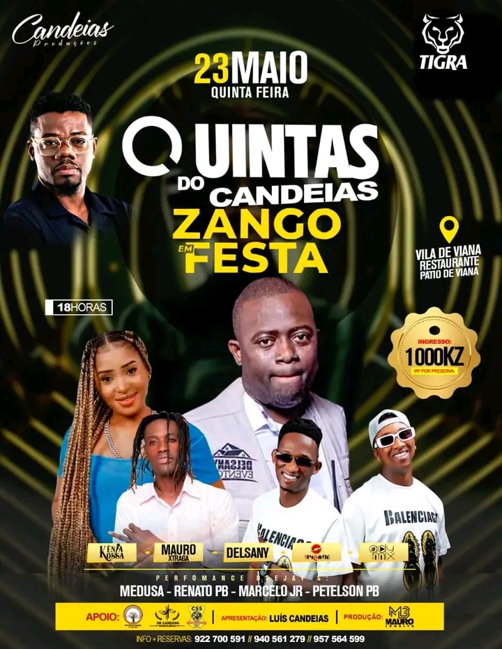- Vou organizar um evento no dia 2024-05-23 com o tema Quintas do Candeias - Zango Em Festa no/a Pátio de Viana, Vila de Viana clica no link para saber mais.