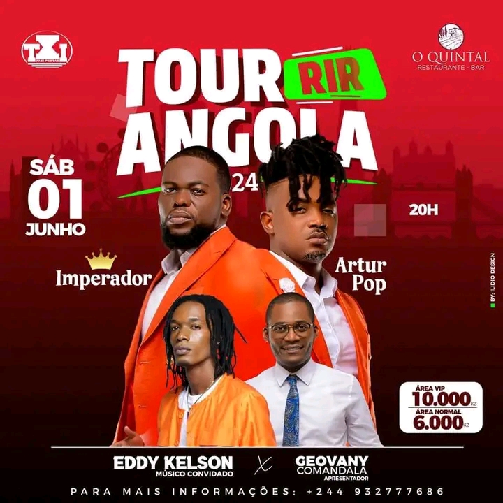 - Vou organizar um evento no dia 2024-06-01 com o tema Tour Rir Angola no/a O Quintal clica no link para saber mais.