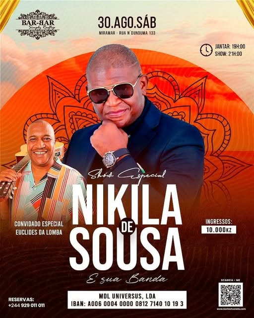 - Vou organizar um evento no dia 2025-08-30 com o tema Show Especial Nikila de Sousa no/a Rua Ndunduma 133, Mira Mar clica no link para saber mais.
