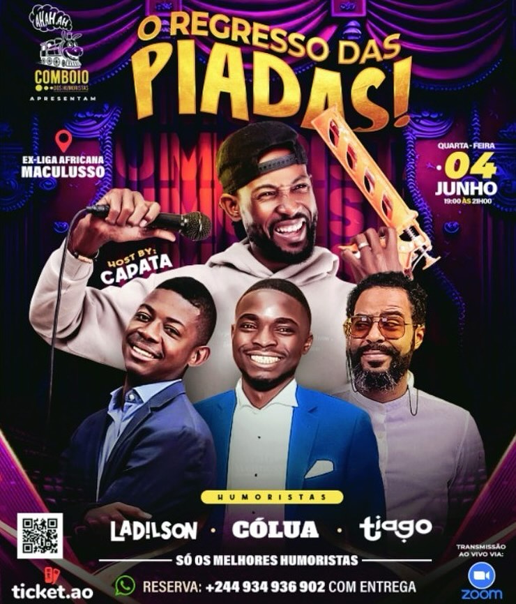 - Vou organizar um evento no dia 2024-06-01 com o tema Tour Rir Angola no/a O Quintal clica no link para saber mais.
